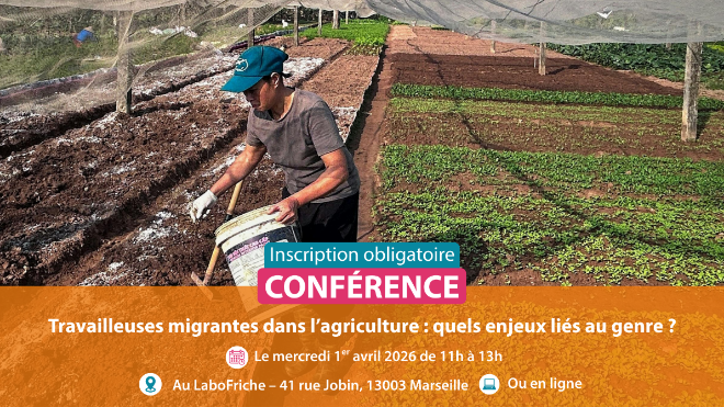 Inscription obligatoire en présentiel : LaboFriche 41 rue Jobin, 13003 Marseille : https://fr.surveymonkey.com/r/ConferencesALIMENTERRE2026